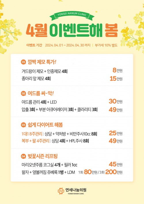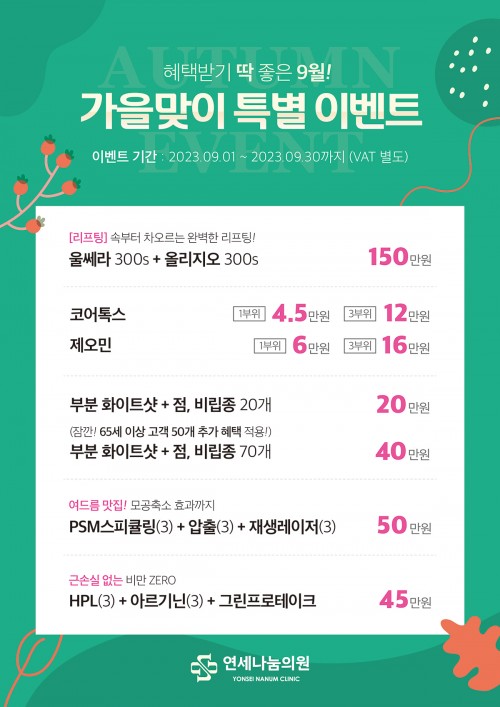 [연세 나눔의원] 10월 첫방문 & 월/화이벤트